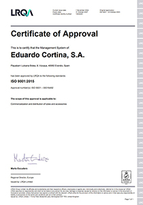 La empresa ha obtenido la certificación según la norma UNE-EN-ISO 9001:2015 por la firma LRQA.